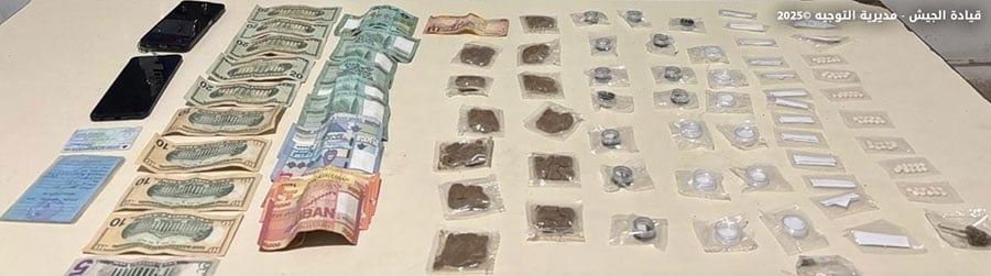 صدر عن قيادة الجيش – مديرية التوجيه بيان جاء فيه: “يواصل الجيش ملاحقة المطلوبين ومروجي المخدرات والمخلين بالأمن في مختلف المناطق اللبنانية، وفي هذا السياق، أوقفت دورية من مديرية المخابرات في منطقة المعاملتين – كسروان السوري (د.ع.) والفسلطينية (م.ع.) لتأليفهما عصابة لترويج المخدرات بين كسروان وساحل المتن وضبطت في حوزتهما …