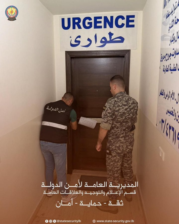صدر عن المديرية العامة لأمن الدولة – قسم الإعلام والتوجيه والعلاقات العامة، بيان جاء فيه: حرصًا منها على حماية الأمن الصحي وسلامة المواطنين، وبنتيجة الرصد والمتابعة الحثيثة، داهمت مديرية جبل لبنان الإقليمية_ مكتب كسروان بتاريخ 21/8/2025، بمؤازرة مفتشين من وزارة الصحة العامة، عيادة غير شرعية في بلدة عشقوت، يديرها الطبيب …