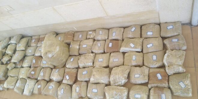 واضاف، “كما ضبطت دورية من المديرية المذكورة في جرود بلدة عرسال كمية كبيرة من المخدرات، موضبة ومجهزة للتهريب”.