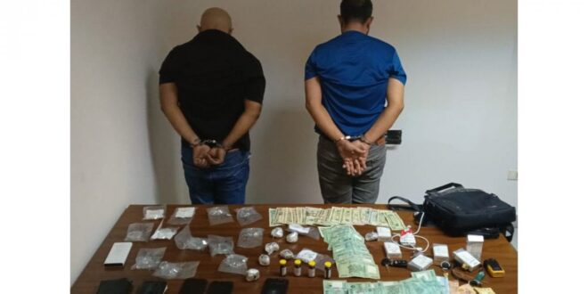 وأشار البلاغ إلى أن: “بتاريخ 03-10-2025، وبعد رصد ومراقبة دقيقة، أوقفتهما إحدى دوريات الشعبة بالجرم المشهود في محلة الزلقا، أثناء قيامهما بترويج المخدِّرات على متن سيارة نوع نیسان تم ضبطها. بتفتيشهما والسيارة، تم ضبط ما يلي: