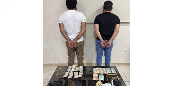 وتابع, بتاريخ 30-10-2025، وبعد رصد ومراقبة دقيقة، تمكّنت إحدى دوريّات الشّعبة من توقيفهما بكمينٍ في محلّة ضهر الوحش، على متن سيّارة نوع نيسان لون كحلي، تم ضبطها. بتفتيشهما والسّيّارة، تم ضبط مسدّس حربي مع ممشط و14 طلقة نارية، وبطاقة ذاكرة USB، ومستندات وأوراق شخصيّة، وسلسال عدد 2، وخاتم عدد 3، “بلاك” عدد 2، وقلادة، وساعة يد، مبلغ مالي، و 3 هواتف خلويّة.